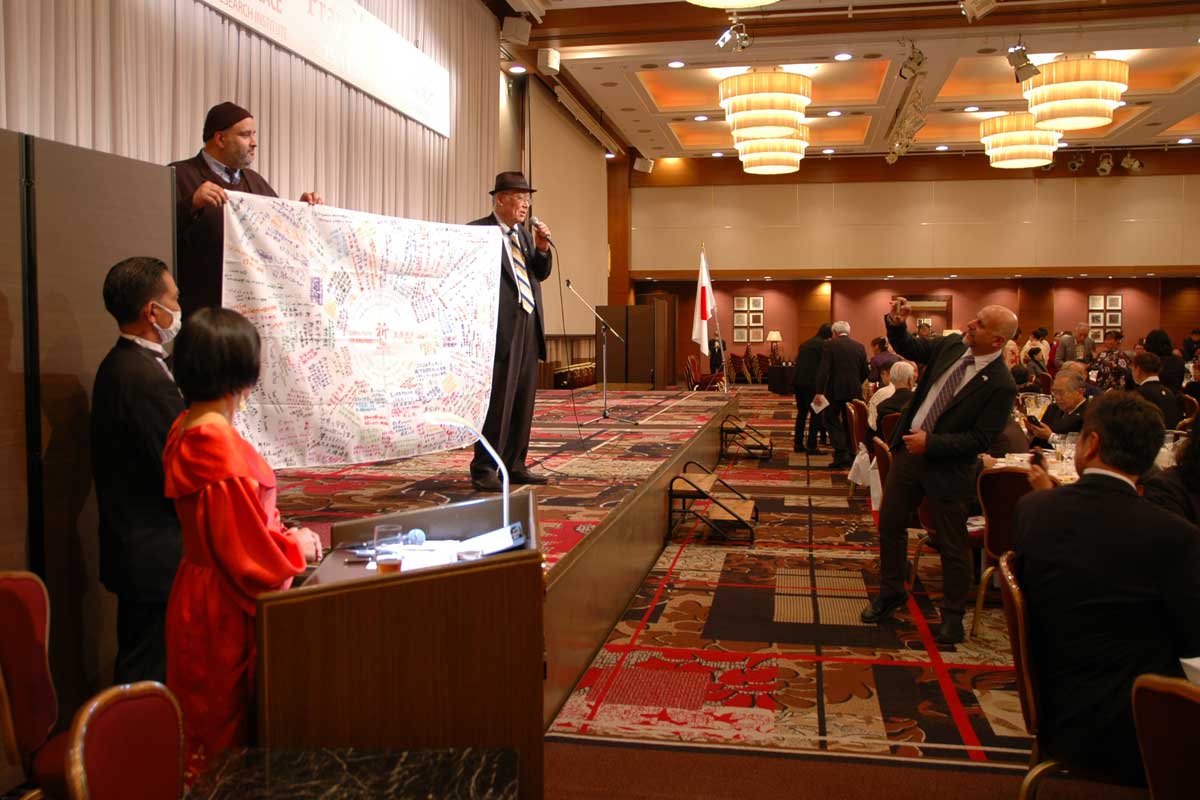 すっかり寒くなりましたが天候にも恵まれ、平日にも関わらず300名近い方々にご来場頂きました。ゲストに宍野史生 世界連邦文化教育推進協議会理事長、ニシム・オトマズキン ヘブライ大学人文学部長、ルワンダ共和国大使 ムカシネ・マリ・クレール閣下をお招きし、参加者一同により平和への祈りが執り行われ、大盛況のうちに閉幕いたしました。