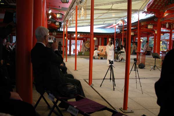 第一部では、拝殿にてゲストの画家のSHOGEN様、ヒーリングシンガー深結様による奉納、第二部では1995年1月17日に起きた阪神・淡路大震災より30年の節目として、当時、倒壊した拝殿の再建に尽力された加藤隆久生田神社名誉宮司が当時の様子など詳細に語られ、また当式典の主催である神戸マルセイユ姉妹都市協会まるせこべの方々によるマルセイユからネット中継での報告、更に加藤隆久名誉宮司を囲んでのトークセッションなど、大変充実した内容の式典でした。